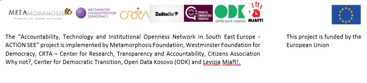 The “Accountability, Technology and Institutional Openness Network in South East Europe – ACTION SEE” project is funded by the European Union and is implemented by Metamorphosis Foundation, Westminster Foundation for Democracy, CRTA – Center for Research, Transparency and Accountability, Citizens Association Why not?, Center for Democratic Transition, Open Data Kosovo (ODK) and Levizja Mjaft!.